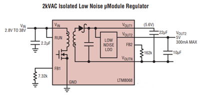- 2 kVAC Isolierter μModule-Wandler