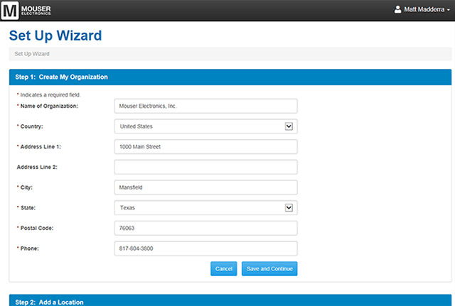 Wenn Sie ein neuer Benutzer sind und Ihr My Mouser-Konto nicht mit einem vorhandenen Bestandsmanagementkonto verknüpft ist, werden Sie zum Einrichtungsassistenten für neue Benutzer weitergeleitet.