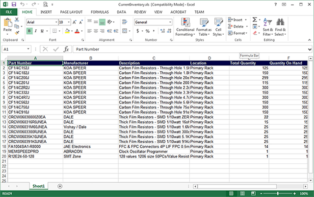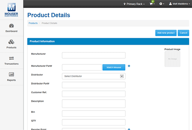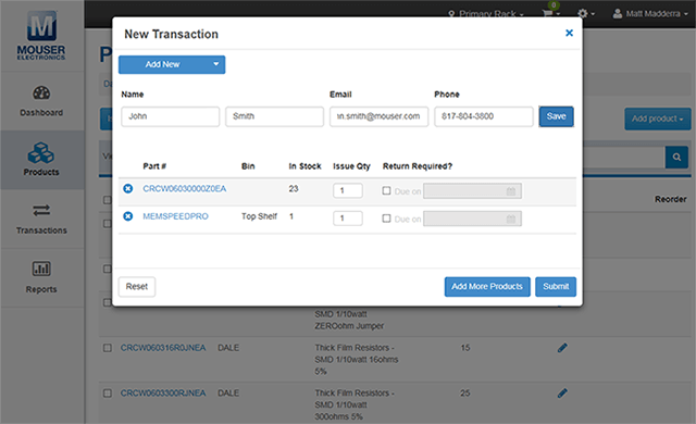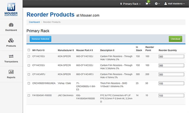 - Verknüpfung von Produkten, die sich in Ihrem Bestand befinden, mit Teilenummern von Mouser, um die Nachbestellung zu vereinfachen
