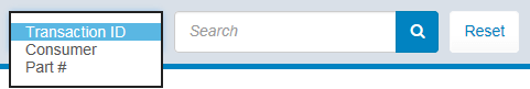 Um die Suche nach einer bestimmten Transaktion zu erleichtern, können Sie alle Aufzeichnungen nach Transaktions-ID-Nummer, Verbrauchername oder Teilenummer durchsuchen. Wählen Sie einfach Ihre Suchkriterien aus der Dropdown-Liste aus und geben Sie Ihren Suchbegriff ein, um alle übereinstimmenden Datensätze anzuzeigen. Sie können Ihre Suchergebnisse jederzeit durch Klicken auf die Schaltfläche „Zurücksetzen“ löschen.