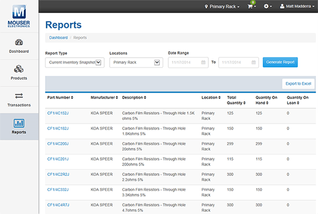 Die Lagerverwaltungs-Plattform von Mouser ist ein webbasiertes System, mit dem Unternehmen ihre Lagerbestände an elektronischen Bauteilen und Zubehör einfach verwalten und verfolgen können.